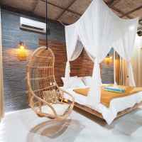 Villa "Coral" is build in tropical modern style and comfortable for accommodating 2 people. For a couple with a child we can provide baby-cot or put a mattress on the floor. Spacious air-conditioned bedroom with a swing chair is combined with an in-suite bathroom. The air-conditioned kitchen and living room with sliding doors face the infinity pool, deck with two sun beds, gazebo and a swing with ocean view where you can relax enjoying the ocean view, make massages or have a romantic candlelight dinner with a bottle of wine.