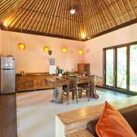 Вилла на береговой линии построена в тропическом стиле среди кокосовых пальм. Смотрит на океан с галечным пляжем и прекрасным коралловым рифом. Большая гостевая комната с широкой терассой, две спальни, 2 ванные комнаты (одна с ванной), укомплектованная кухня.